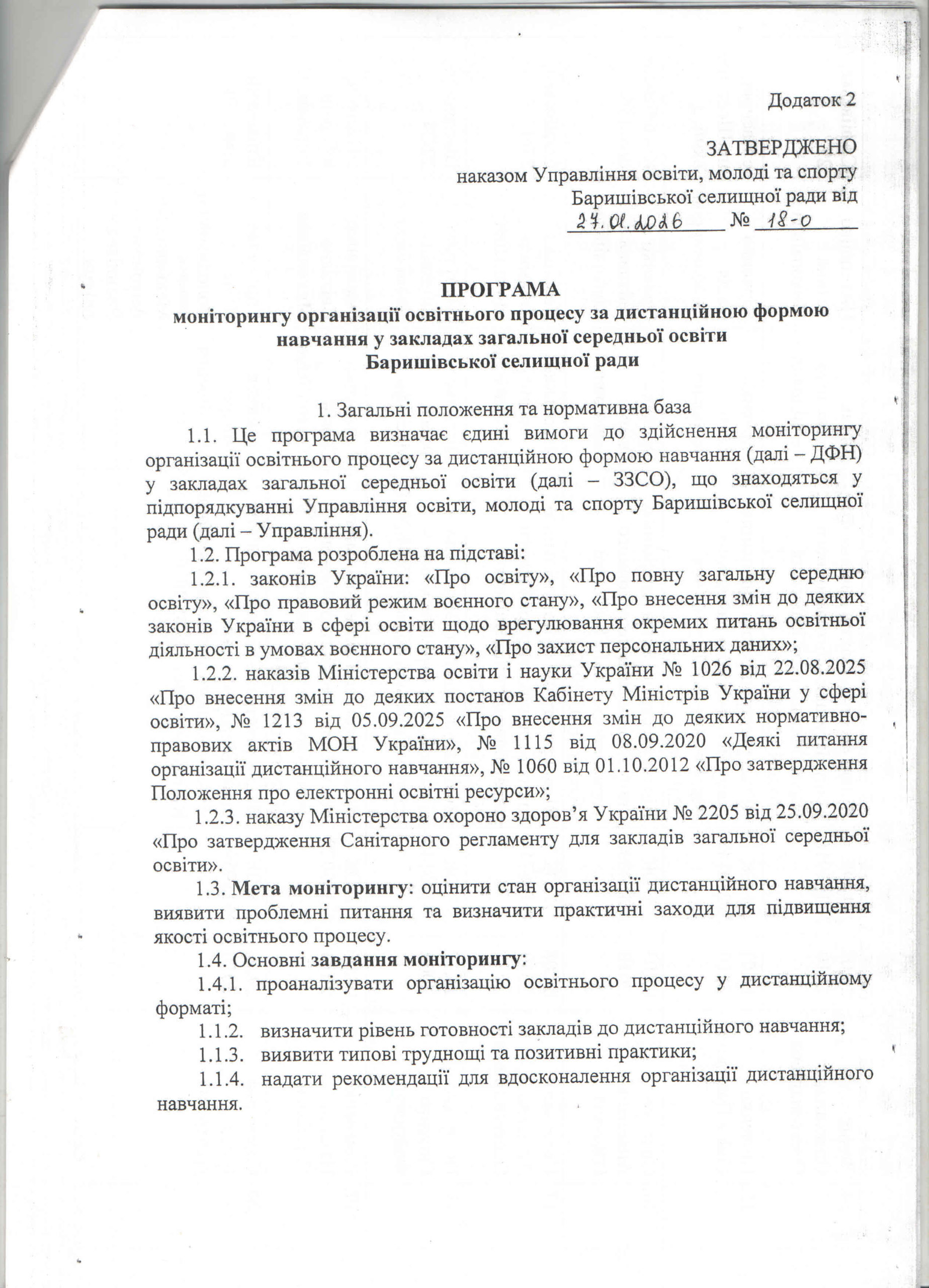 № 02.1-о Про здійснення моніторингу організації освітнього процесу