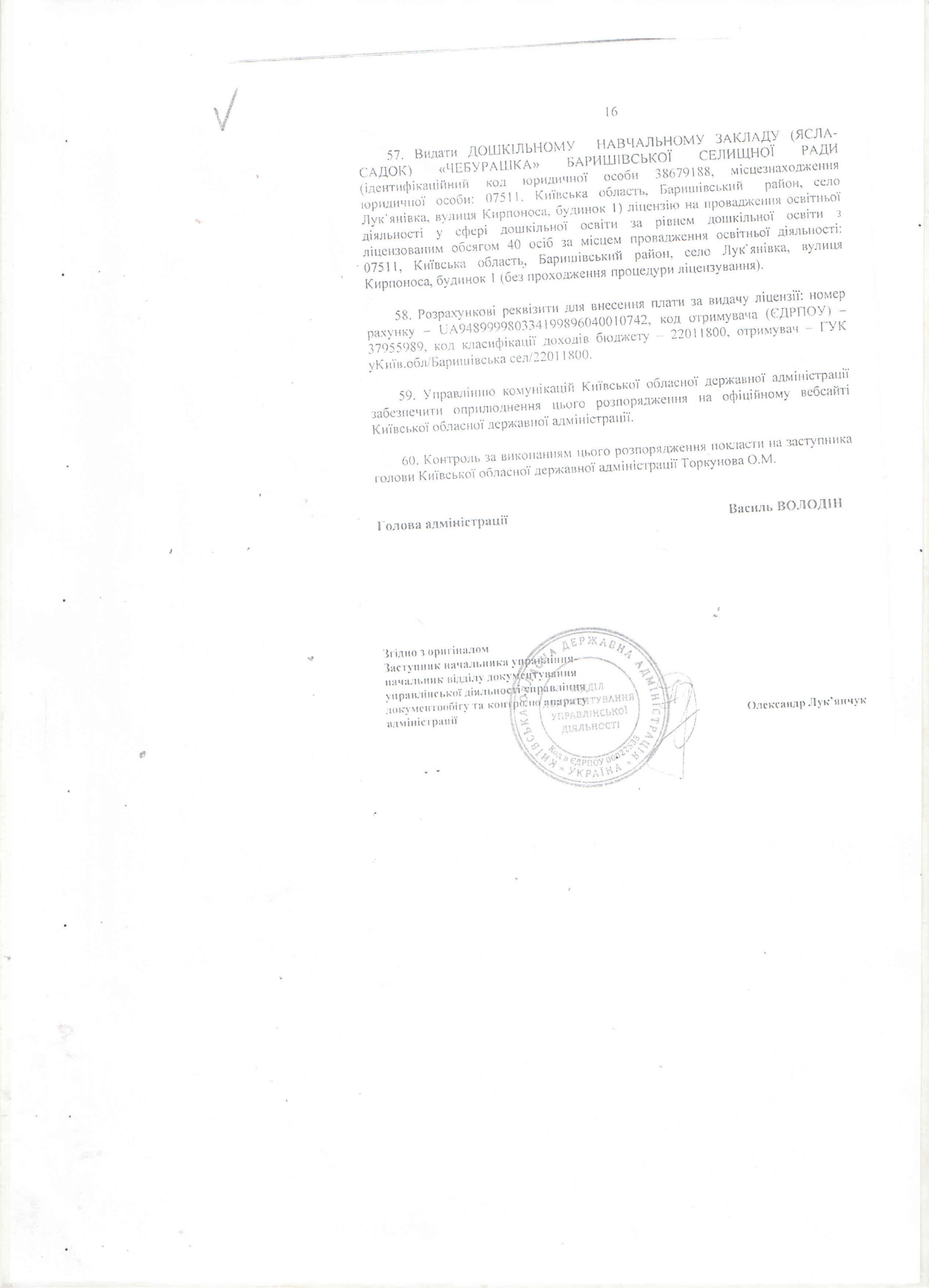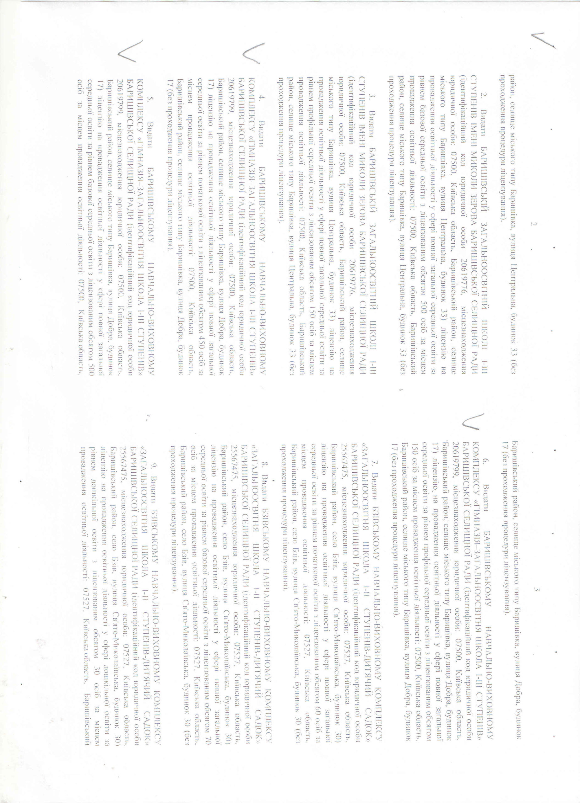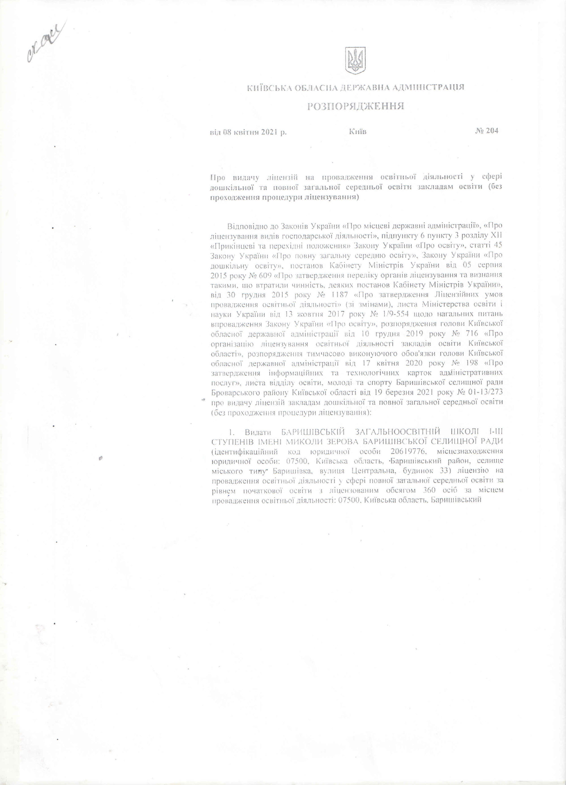 Про нас Опорний заклад освіти “Баришівський ліцей” Баришівської селищної ради Орг. форма НЗ: державний заклад Тип ЗНЗ: ліцей з початковою школою та гімназією Опис Рік народження – 1937, в новому приміщенні з 1978 року. Проектна потужність – 960 Площа території – 2,3133 га Загальна площа приміщень – 4 295 м.кв. Загальна площа класних кімнат – 1 442 м.кв. У школі функціонує 40 класів: початкової школи – 16 гімназії – 20 ліцею – 4 класів з поглибленим вивченням окремих предметів – 3: математика – 2 іноземна філологія – 1 профільних класів – 4 інформаційно-технологічний – 1 іноземна філологія – 2 біотехнологічний – 1 математичний -1 Всього навчається 897 учні Навчально-виховний процес забезпечує 69 учителів, з них мають звання „вчитель-методист” – 13, звання „Старший учитель” – 19. Населений пункт: Баришівка (Броварський район, Київська обл., Україна) Презентація “Баришівський ліцей” Річний план роботи на 2025-2026 н.р. Статут Баришівського ліцею Структура та режим роботи Баришівського ліцею Правила внутрішнього розпорядку Положення про внутрiшню систему забезпечення якостi освiти ЗЗСО Стратегія розвитку закладу освіти на 2022-2027 роки Програма розвитку Рішення про закріплення території обслуговування за закладами освіти Мережа класів Про кількість класів понад норму Інформація про вільні місця в класах ОЗО